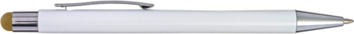 Description Stylo bille en aluminium et ABS avec embout pour écran tactile, mine Bleue. Gravé, le rendu de la couleur correspond au coloris de l'embout. |