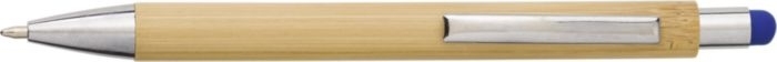 Description Stylo bille en bambou et plastique avec embout pour écran tactile et clip en métal, mine Bleue. |
