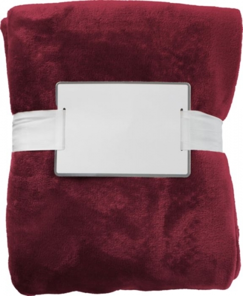 Plaid polaire flanelle en polyester 280 g/m² avec un ruban et un insert en carton destiné à une pesonnalisation. Taille de 120 x 150 cm.