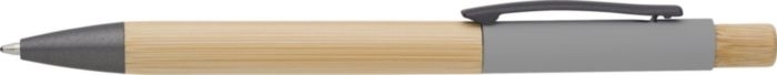 Description Stylo bille avec corps en bambou et en aluminium et attributs couleur titane, mine Bleue. |
