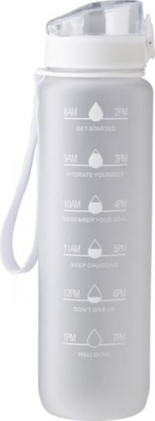 Description Gourde en rPET toucher gomme mat d'une contenance de 1 L avec dragonne et bouchon sport. |