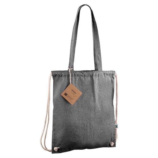 Description Sac à dos à cordes 2 en 1 avec anses et cordes en coton Fairtrade et recyclé de 140gr/m2. Garantie Fairtrade et certificat GRS. |