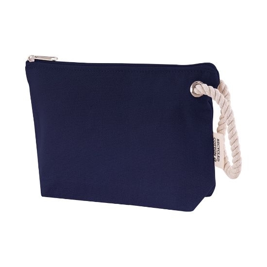 Description Trousse en coton recyclé 300 gr/m². Décoré d'une poignée en corde sur le côté. |