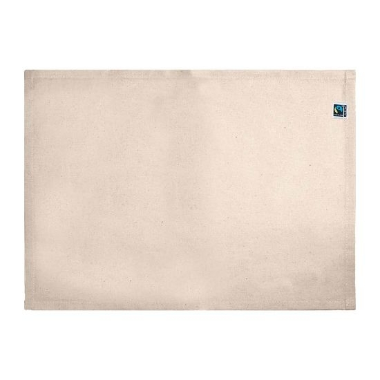 Description Set de table fabriqué de coton Fairtrade 140 gr/m2. ll se présente à plat et ficelle à part |