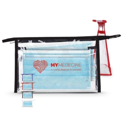 Kit trousse zippee transparente avec 2 masques chirurgicaux type i
