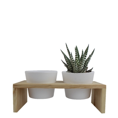 Plateau bois 2 pots ceramique