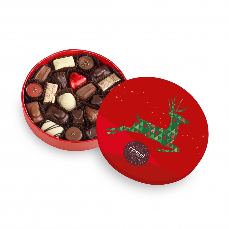 Description Boîte ronde garnie 21 chocolats 265g |