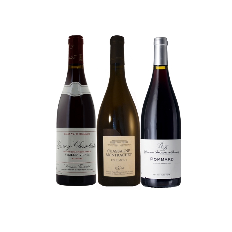 Description 1 Gevrey Chambertin Domaine Tortochot Vieilles Vignes 2017/18, 1 Chassagne-Montrachet Château de Chassagne-Montrachet 2017/18, 1 Pommard Domaine Devaux 2016/18. Crus issus de grands terroirs, aujourd'hui de plus en plus difficiles à trouver, produits par des vignerons émérites. Ces vins dotés d'une garde de 4 à 8 ans. |