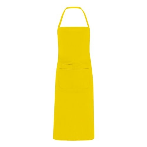 Description Tablier long.1/ bretelle ton sur ton au cou.2. Deux poches frontales, une intérieure et une grande superposée.3. cordons latéraux pour attacher.90% polyester / 10% coton, 150 g/m².*Modèle pour l'alimentation.*Etiquette détachable.[65cm/90cm]  |