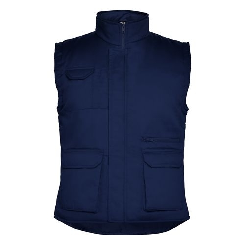 Description Bodywarmer de travail multipoches avec une poche intérieure avec fermeture velcro.1.- Fermeture éclair sur toute la longueur avec patte et velcro. 2.- Une poche extérieure poitrine coté droit (portefeuille, portable).3.- Deux poches frontales avec soufflet et ouvertures latérales.4.- Deux poches à stylo.5.- Une poche zippée. 1 poche intérieure plaquée avec velcro. 6.- Emmanchures coupe-vent.7.- Bas postérieur long.8.- Ajustable avec fermeture automatique.Extérieur: 80% polyester / 20% coton, 200 g/m². Intérieur: 100% polyester matelassé, 170 g/m².*Modèle coupe-vent.[64cm/70-76cm] |