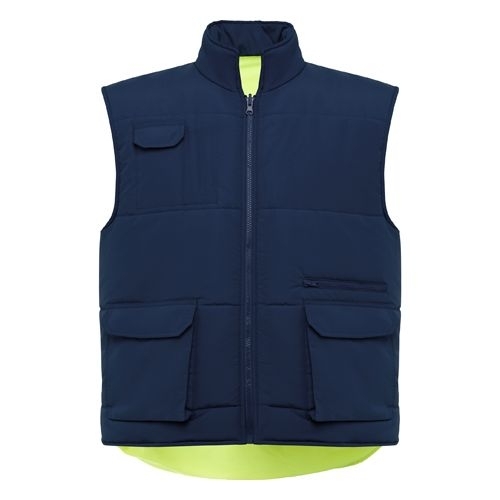 Description Gilet réversible multi-poches haute visibilité avec col montant.Gilet multi-poches.· Zip central avec tirette réversible.· Une poche extérieure pour portable sur le coté droit.· Deux poches avant avec soufflets et fentes latérales.· Deux poches pour stylos.· Poche zippée.· Coupe-vent aux poignets.· Ourlet arrière plus long.· Ajusteur élastique.Gilet haute visibilité· Couleur fluorescente.· Deux bandes réfléchissantes horizontales.Tissu extérieur : 100 % polyester, taffetasInterieur: 100 % polyester.Tissu fluorescent : jersey simple 100 % polyester450g/m²Â· Etiquette détachable.Certification EU selon les normes : EN ISO 13688 : 2013 ET EN ISO 20471 : 2013 / A1 : 2016Classe I. |