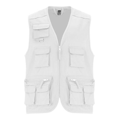 Description Gilet de travail multi-poches:1. Zip central avec tireur.2. Col V.3. Trois poches sur le torse avec rabat et fermeture en velcro.4. Deux poches latérales avec zip et tireur, avec deux poches superposé avec rabat et fermeture velcro.5. Deux poches arrière avec rabat et fermeture velcro.6. Cou, emmanchure et ourlet avec passepoil. 65% polyester / 35% coton, 200 g/m² .* Etiquette détachable.[62cm/74cm] |