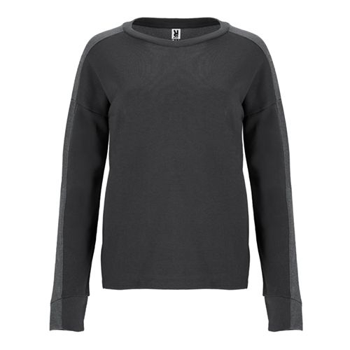 Description Sweat-shirt pour femme, combiné avec deux tissus et deux couleurs. Col, demi poignet et bas du dos en cote 2x1. Poignets coupe asymétrique. Bas avec ouvertures latérales et dos plus long que le devant.60% coton / 40% polyester, maille molleton non grattée, 300 g/m².Couleur Gris chiné 58Â : 85% coton / 15% viscose.Couleur Gris chiné: 85% coton / 15% viscose*Etiquette détachable.[48cm/60cm] |