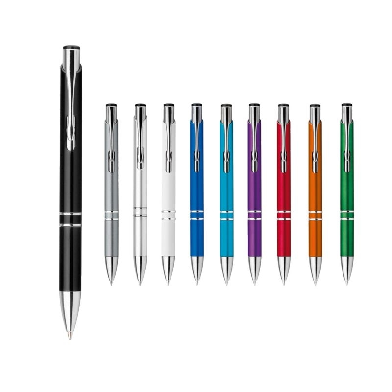 Stylo à  bille avec clip en métal, disponible en différentes couleurs.ø10 x 138 mmPropriétés : Encre bleuPlastiqueCertificats : MSDSMarquage par défaut : Stylo - Corps (Tampographie - 50 x 6). Diam. 10