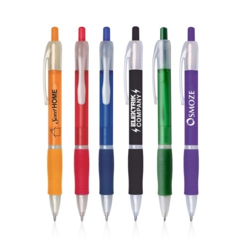 Description Stylo bille en plastique translucide avec embase en gomme, encre noire.Les prix comprennent un marquage en 1 couleur à un endroit. Diam. 12 |