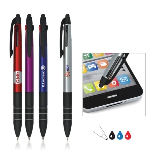 Description Stylo bille 3 couleurs d'encre avec embout touch pour écrans tactiles.Le stylo multifonction slim, agrémenté d'une prise en main soft très confortable.Nul besoin de choisir entre un stylo 3 couleurs, une fonction touchpad pour écrans tactiles et une ligne séduisante. Ces qualités sont rassemblées dans le stylo multifonction SLIM, agrémenté d'une prise en main "soft" très confortable, pour prix tout doux.Les prix comprennent un marquage à un endroit uniquement de couleur argent sur les modèles rouge (05). Diam. 10.5 |