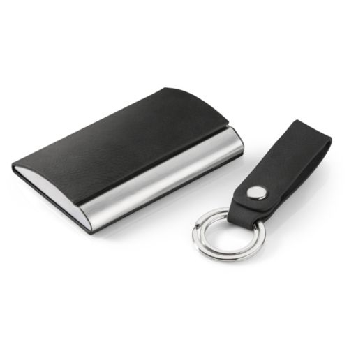 Description BORIS c'est un élégant set de cadeaux qui comprend un étui de cartes de visite et un porte-clés. Emballé dans une boîte noire et de bon goût. Le couvercle de la boîte est revètu de cuir artificiel de la mème couleur que l'étui de cartes de visite et le porte-clés. Il est possible d'obtenir un effet de marquage spécial. Larg. 64 Long. 97 H. 16 |