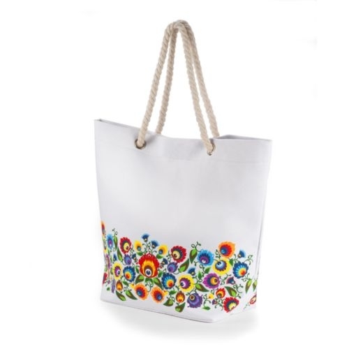 Description Le sac à un compartiment avec une impression inspirée par les motifs traditionnels folk, conçue par les graphistes de la marque Blue Collection. Le sac FOLK est fait en polyester 600D et en coton. Il a une petite poche zippée et un aimant utilisé pour fermer le sac. Marquage par broderie est possible, mais uniquement sur demande individuelle. H. 170 Long. 430 Larg. 370 |