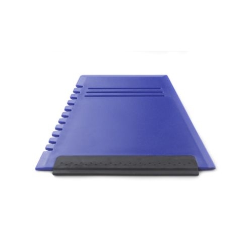 Description Grattoir à glace avec trois tètes - plate, crantée et en caoutchouc. Fabriqué en matière plastique non transparente |