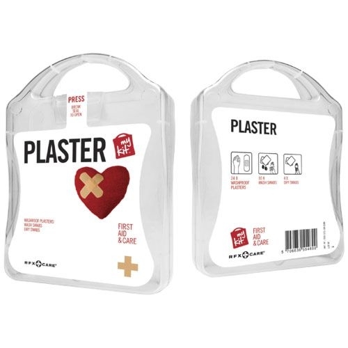 Description Le set de pansements idéal à avoir près de vous. Avec ce kit vous ètes prèt à gérer les petites blessures. Contient:24 pansements, 10 cotons pour nettoyer la peau, 4 cotons secs. Tous les contenus à l'intérieur des kits sont conformes à la législation européenne. Le prix comprend l'étiquette personnalisée.PlastiqueSticker numérique - Corps - 90 x 127 mm - couleurs max : full colour. Long. 100 Larg. 30 H. 134  |