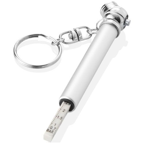Description Participe à la préservation de l'environnement en réduisant les émissions de CO2 et en limitant la consommation de carburant grace à des pneus bien gonflés. Mesures en bar/Kpa et Lbs.AluminiumGravure - Corps - 54 x 5 mm - couleurs max : 1. H. 80 Diam. 15 |