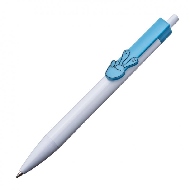 Description Stylo-bille plastique à encre bleue, corps blanc et clip en 6 différentes formes de mains 2D. Tampographie sur le corps (4,5 x 1,2 cm) ou sur le clip (2,5 x 0,7 cm). Marquage sur le contour, sur demande. Diam. 10 |