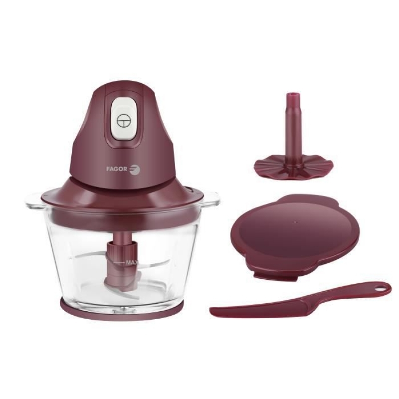 Description Hachoir FAGOR - FG499 - SET MINI HACHOIR 1L - 300W - DOUBLES LAMES D?TACHABLES - 1 VITESSE - BOL EN VERRE |
