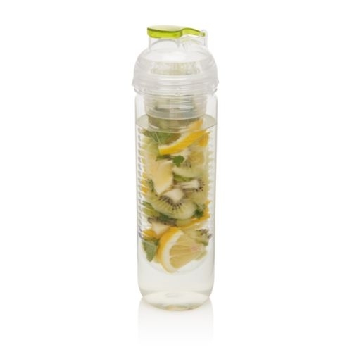 Description Bouteille 500ml avec compartiment à infusion. Aromatisez et vitaminez votre eau en ajoutant des fruits frais dans le compartiment à infusion. Remplacez les fruits par des glaçons et votre eau est instantanément rafraîchie.Tritan, ASSans paraffines chlorées à chaine courte et moyenne, Conforme à la directive 1907/2006/EC de teneur en SVHC, Conforme à la légistlation de la sécurité alimentaire Allemande, Sans BPABoîte neutre individuelle en blancSilkScreen Round,Pad Print Drinkware - article - 180 x 140 mm - max color : 1. Diam. 60 H. 227 |