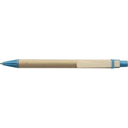 Description Stylo bille en carton et plastique avec clip en bois, mine bleue.Matières : ABS/Carton.Cadmium ; PAHs ; Phthalates ; PCP ; Safety Data Sheet (SDS) ; EN71-3.Marquages : Sérigraphie : Dans le prolongement du clip ; Tampographie : Sur le clip ; Tampographie : A côté du clip (droitier) ; Tampographie : A côté du clip (gaucher). H. 140 |