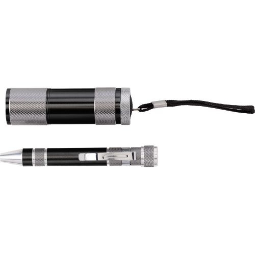 Description Set composé d'un tournevis (4 embouts plats et 4 cruciformes) et d'une torche en aluminium de 9 LEDS, piles comprises.Matières : alluminium alloy with chrome plated.Battery 2006/66/EC ; PAHs ; RoHS ; MSDS ; BSCI.Marquages : Laser : A côté du clip (droitier) ; Laser : A côté du clip (gaucher) ; Laser : 180° à l'arrière du clip ; Laser : Sur le corps ; Tampographie : A côté du clip (droitier) ; Tampographie : A côté du clip (gaucher) ; Tampographie : Sur le corps ; Tampographie : Boîte-cadeau ; Sérigraphie : Boîte-cadeau. Larg. 135 Long. 70 H. 32  |