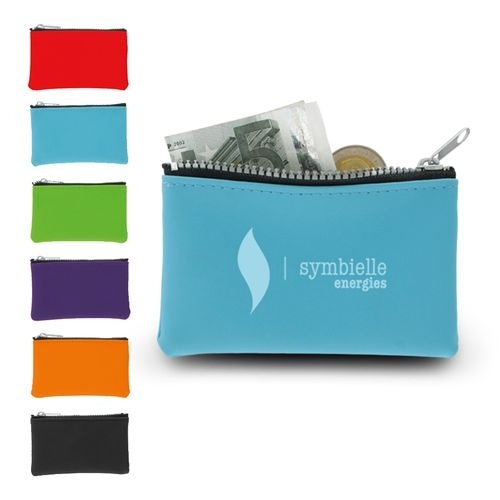 Description Porte-monnaie en PVC coloré touché soft avec fermeture éclair plastique argenté. Coloris pastels, bleu, vert, jaune, violet et noir. Marquage 1 couleur blanc conseillé et par défaut.PVC |