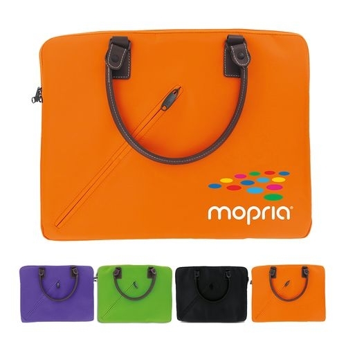 Description Un look résolument contemporain pour ce porte-documents en polyester 190T moussé. Poche diagonale sur face avant et intérieur multipoches pour une utilisation très pratique. Entièrement doublé en nylon noir, 2 grandes poignées chocolat, finition surpiqure blanche façon sellier. Zip de fermeture assortis ton sur ton. Coloris noir, vert, orange ou prune. Marquage en 1 couleur, noir conseillé et par défaut ou QuadriTransfert.POLYESTER |