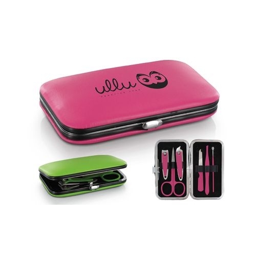 Description Un indispensable du sac à main, ce set manucure avec ses 6 ustensiles assortis, est décliné en 3 coloris très féminins. Coloris gris , magenta, vert. Marquage en 1 couleur, noir conseillé et par défaut.PVC |