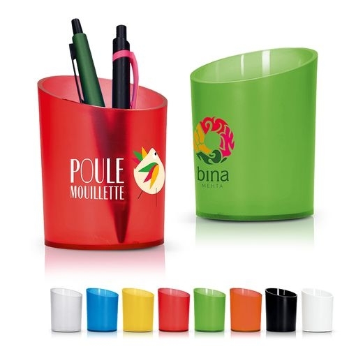 Description Un style haut en couleurs pour cet indispensable du bureau qui conjugue sobriété et touche d'originalité ! Pot a crayon. Livré sans stylo, en sachet individuel non fermé. Marquage tournant sur 210 mm.PS CRISTAL Diam. 74 |