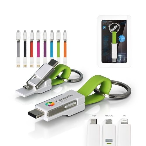 Description C'est pas le bon embout... Voilà une phrase que vous n'entendrez plus avec ce cable 3 en 1 qui met d'accord l'Apple addict, le féru d'Android et l'amateur de smartphones dernier cri ! cable de charge et transfert de donnée (suivant système d'exploitation) 3en1 micro USB, Type C, Lightning. Livré avec anneau porte-clés sous blister avec cartonnette illustrée. Cartonnette personnalisable. Marquage sur l'embout blanc en 1 couleur ou QuadriNumérique.ABS |