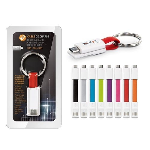 Description Mini, il sait se faire oublier€¦ Pratique et coloré, il est indispensable pour rester connecté ! Cable de charge USB/Micro USB standard qui permet également le transfert de données. Coloris rouge, orange, gris, vert, bleu, noir, magenta, prune. Livré avec anneau porte clé sous blister avec cartonette illustrée. Marquage sur l'embout blanc en 1 couleur ou QuadriNumérique.ABS |