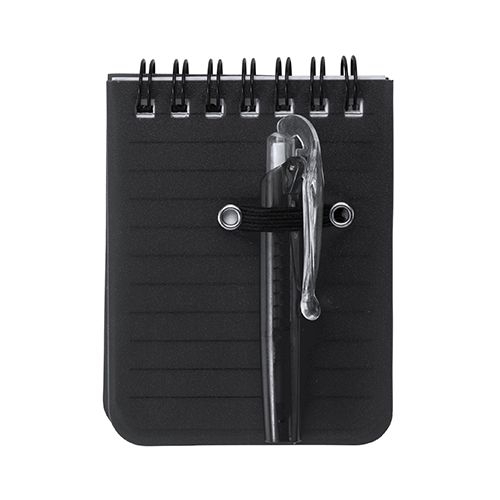 Mini cahier à spirale et couverture rigide en PP. 60 feuilles de papier ligné. Avec un stylo en encre bleue.Couvercle en PPInformation de marquage:D(4),B(4)7cm/0,7cm/9,5cm