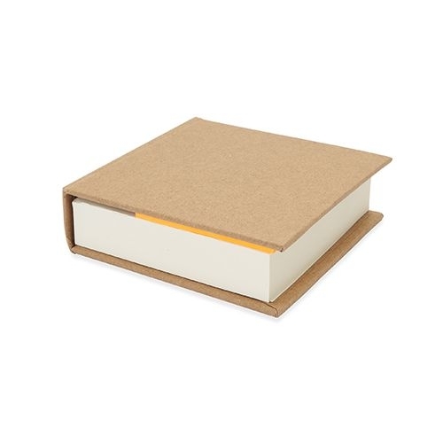 Description Bloc-notes au design classique avec couvertures en carton recyclé. 200 feuilles blanches. Comprend 125 notes autocollantes de différentes couleurs.Papier 70g/m².200 feuilles blanches.125 marqueurs de couleur.8,1cm/8,3cm/2,6cm |