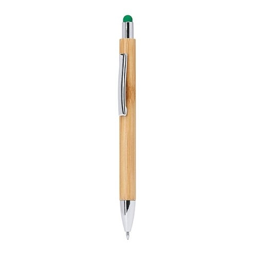 Description Stylo à bille Eco line avec corps en bambou, pointeur tactile couleur et clip en métal. Bouton-poussoir, clip et pointe argentés. Charge jumbo claire de 1,0 mm avec encre bleue.Bambou et métal.Marquage:- Sur le corps: Tampographie B (max. 4 couleurs).14,8cm |