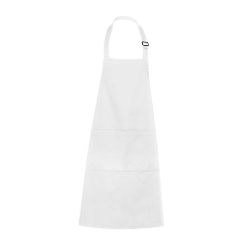 Description Tablier long.1.- bretelles et fermeture en plastique.2.- cordons lateraux pour attacher.3.- poche frontale.80% polyester / 20% coton, tissu sergé de 220 g/m².*Etiquette détachable.*Alimentation.[46cm/64cm] |