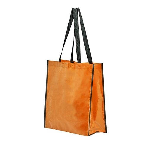 Description Sac laminé brillant 120gsm sans fermeture. Poignées en nylon avec surpiqà»res en X et passepoil noir.Polypropylène laminé.Marquage:- Centré de chaque coté: Sérigraphie F (max.1 couleur).39cm/15cm/39cm |