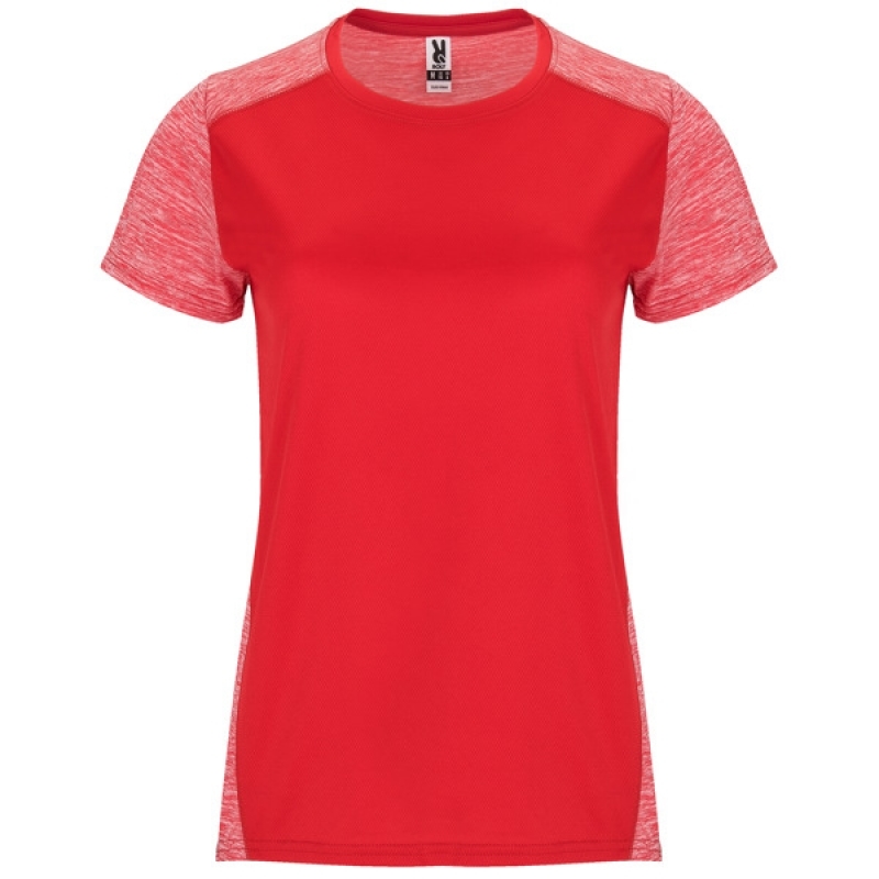 Description T-shirt technique manches courtes pour femme. 1. Col rond. 2. Combiné au dos, épaules et manches avec deux tissus de polyester. 3. Tissu principal face avant bird's eye et tissu space dye en face arrière. 4. Le dos est légèrement plus long que le devant. Tissu face avant: 100 % polyester en bird's eye. Tissu face arrière: 100 % polyester space dye. 135 g/m². Modèle respirant avec séchage facil. *Étiquette détachable. *Tissu technique. *Modèl respirant *Duo concept. |