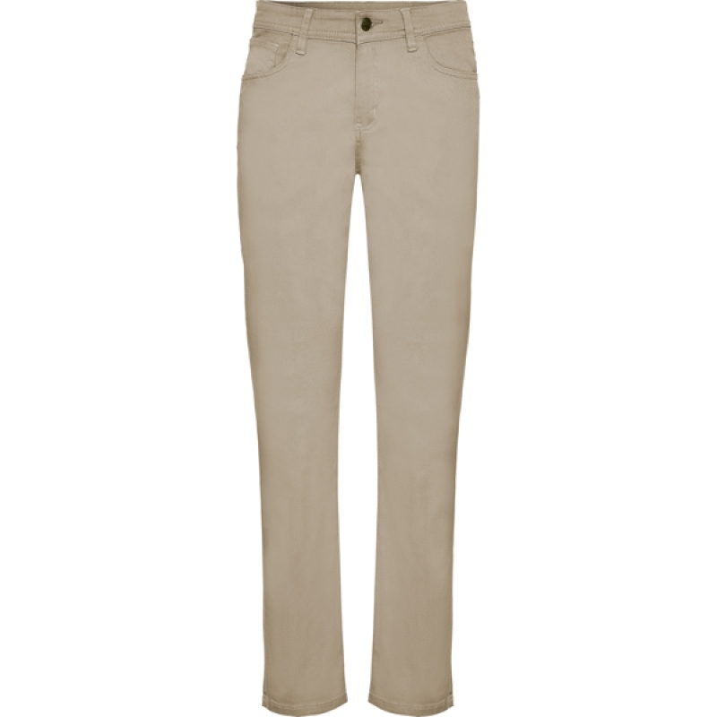 Description Pantalon femme, tissu résistant et coupe confortable. · Deux poches avant, 1 poche porte-monnaie à droite. · Deux poches arrière avec dessin · Passe ceinture. · Empiècement comme les jeans. 97% coton / 3% élasthanne, 280 g/m². |