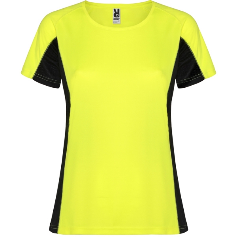 T-shirt technique combiné avec deux tissus en polyester, manches courtes raglan. tissu principal bird's eye et panneaux latéraux et intérieur des manches en tissu micro perforé. Col rond avec bande de propreté renforcée à l´interieur. T-shirt confortable et moulant. Tissu principal : 100% polyester, birds eye. Panneaux : 100%polyester microperforé. 140 g/m². *Étiquette détachable. *Tissu technique. *Model transpirable. *Duo concept.
