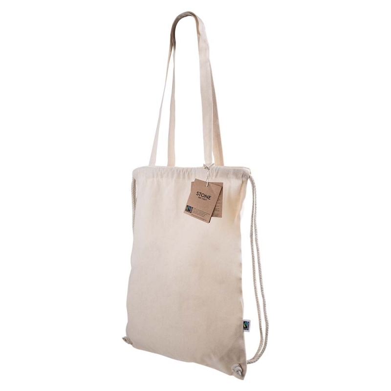Description Sac à dos à cordes 2 en 1 avec anses et cordes, en coton Fairtrade de 140gr/m2. |