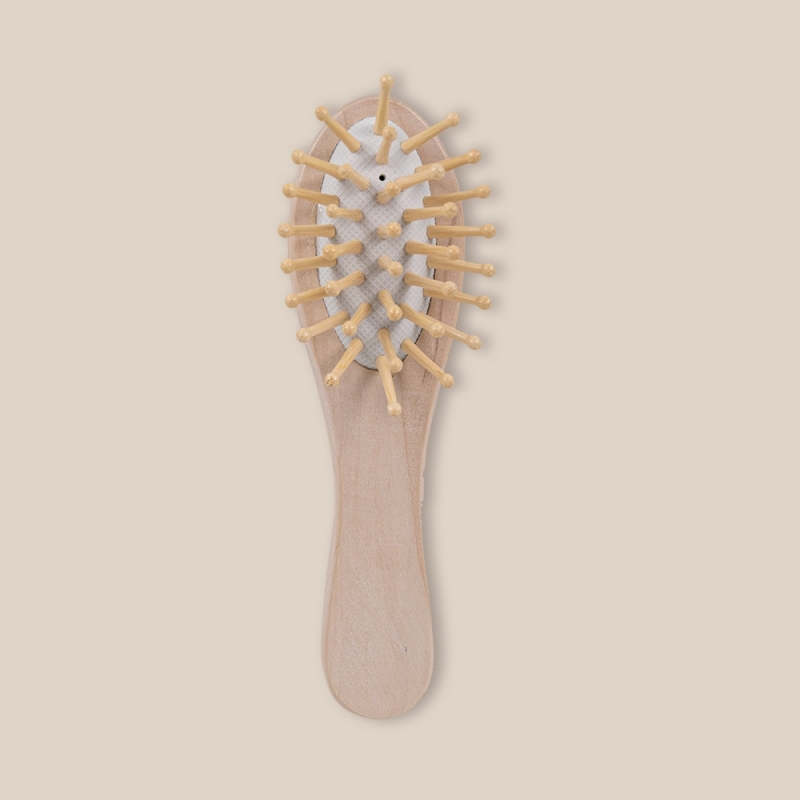Description Brosse à cheveux en bois , en différentes couleurs avec ample zone de marquage. |