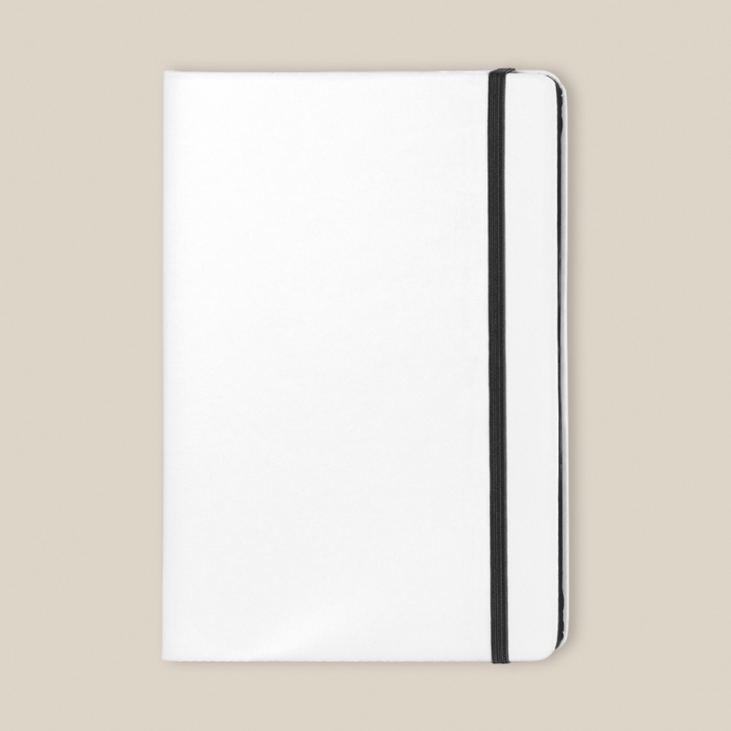Description Cahier A5 avec couvertures fabriquées en PU de couleur blanche ainsi qu'une fermeture à bande élastique et ruban marque-page. Contient 80 feuilles de couleur blanche à l'intérieur. Avec certificat FSC. |