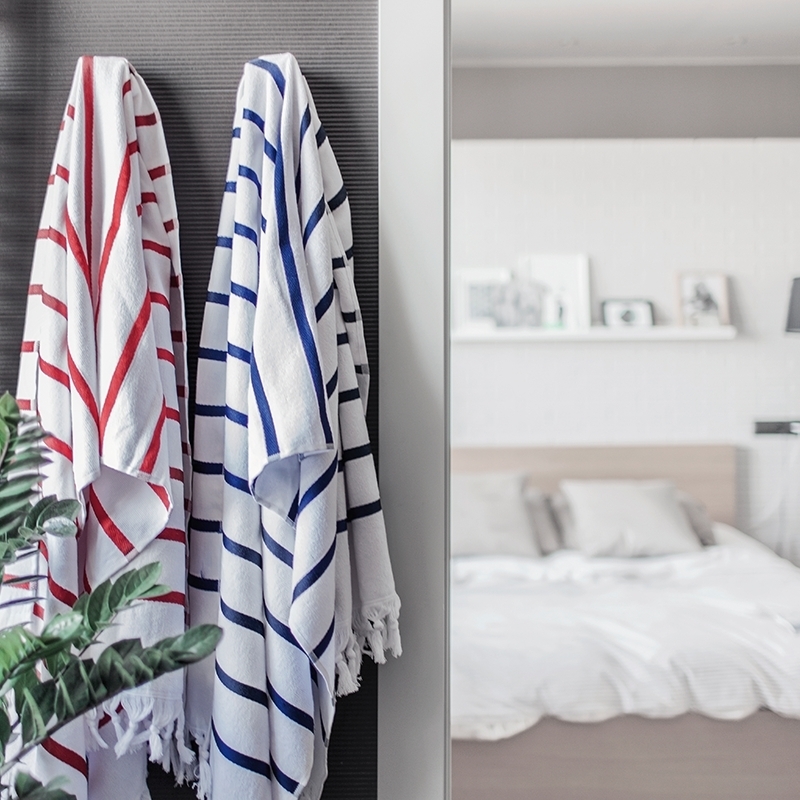 Description Peréo serviette , fabriquée en tissu avec deux matières différentes, une en coton très doux et l'autre, la partie serviette, avec un toucher velouté. |