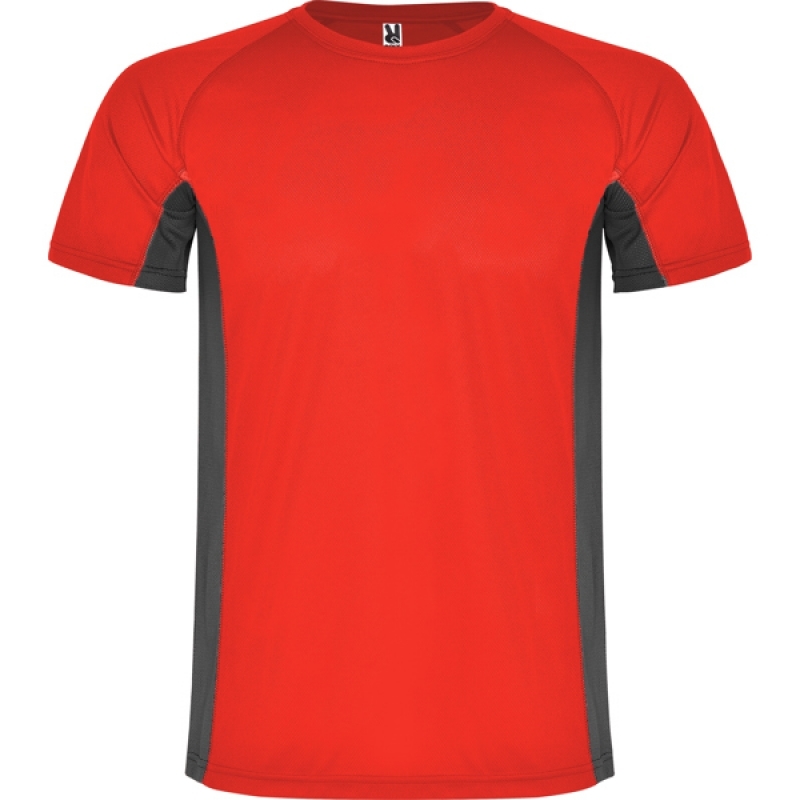 Description T-shirt technique combiné avec deux tissus en polyester, manches courtes raglans. Tissu principal bird's eye et panneaux latéraux et intérieur des manches en tissu micro perforé. Col rond avec bande de propreté renforcée. T-shirt confortable et moulant. |