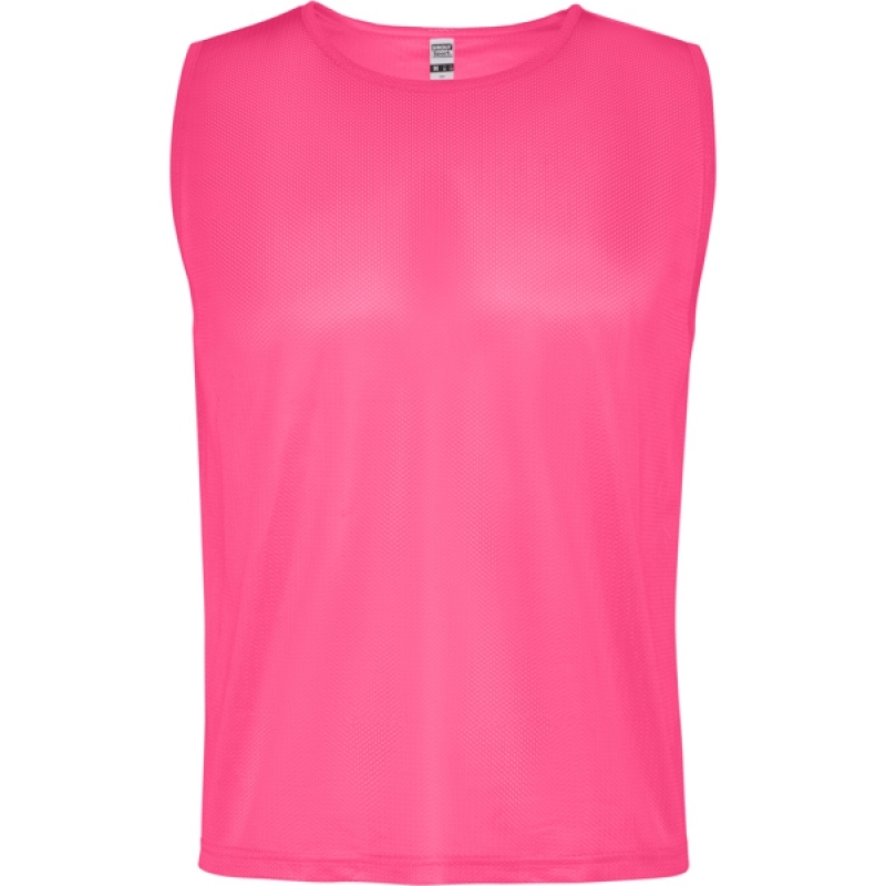 Description Dossard de sport respirant unisexe.· Garniture de couture dans le même tissu au niveau des emmanches et du col. · Double couture à l'ourlet. |